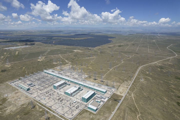 ??這是2025年7月25日在青海省海南藏族自治州共和縣拍攝的±800千伏特高壓青南換流站(無人機照片)。新華社記者 孫瑞博 攝
