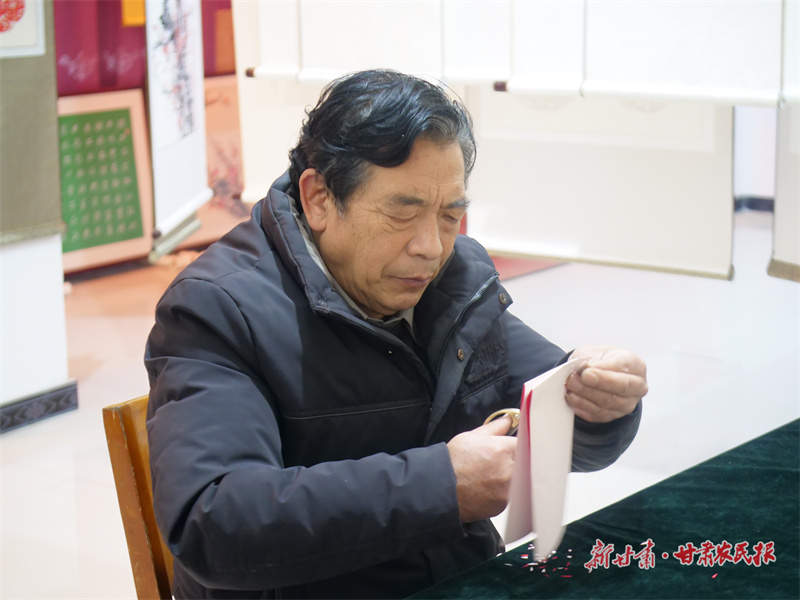 剪紙傳承人正在剪作品。